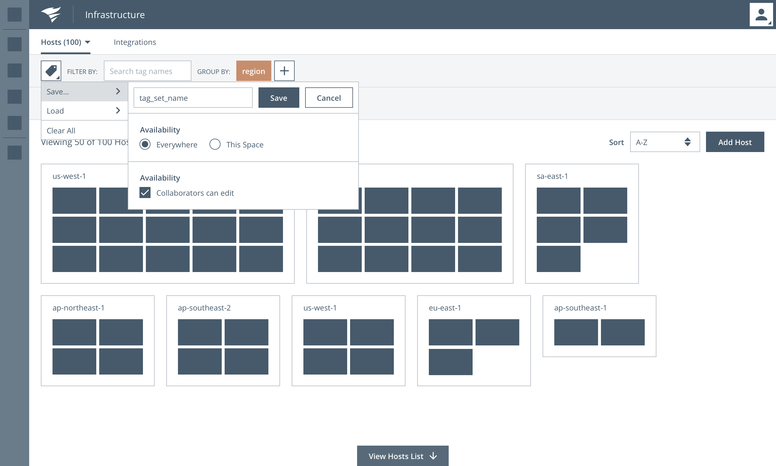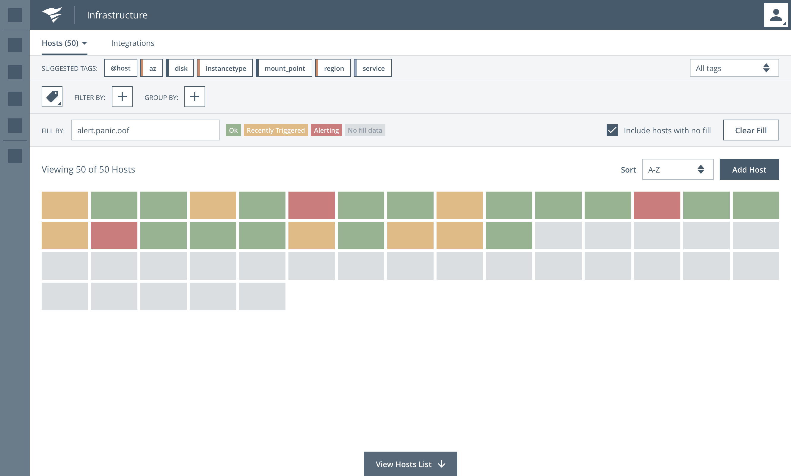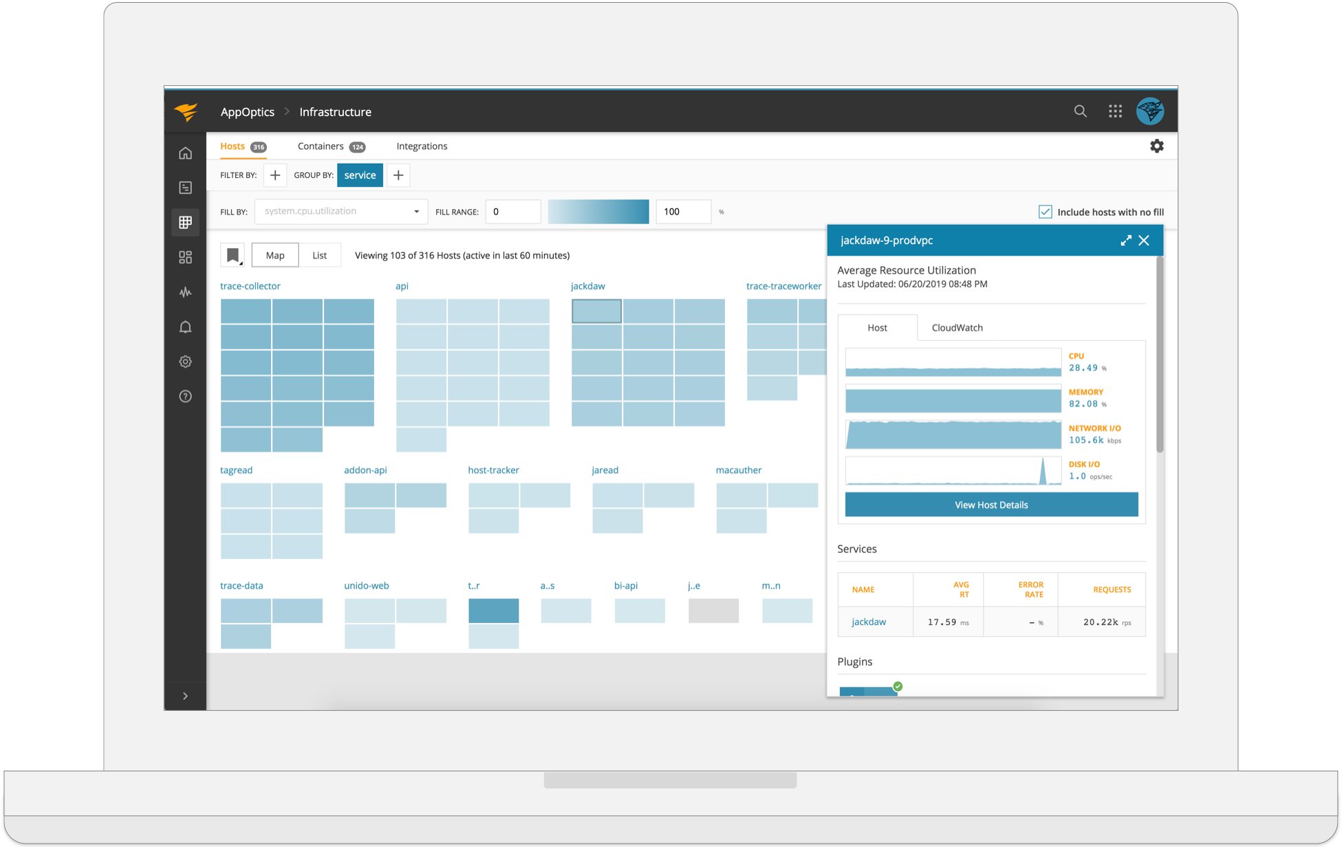 | Challenge: Users needed a way to monitor and visualize hundreds or even thousands of host / infrustructure instances. There were several variations of infrastructure to consider such as traditional hosts, containers and amazon web services. | Solution: Create a new user experience powered by an interactive "map" visualization that allows users to spot trends, filter and set threshholds for key server metrics. |